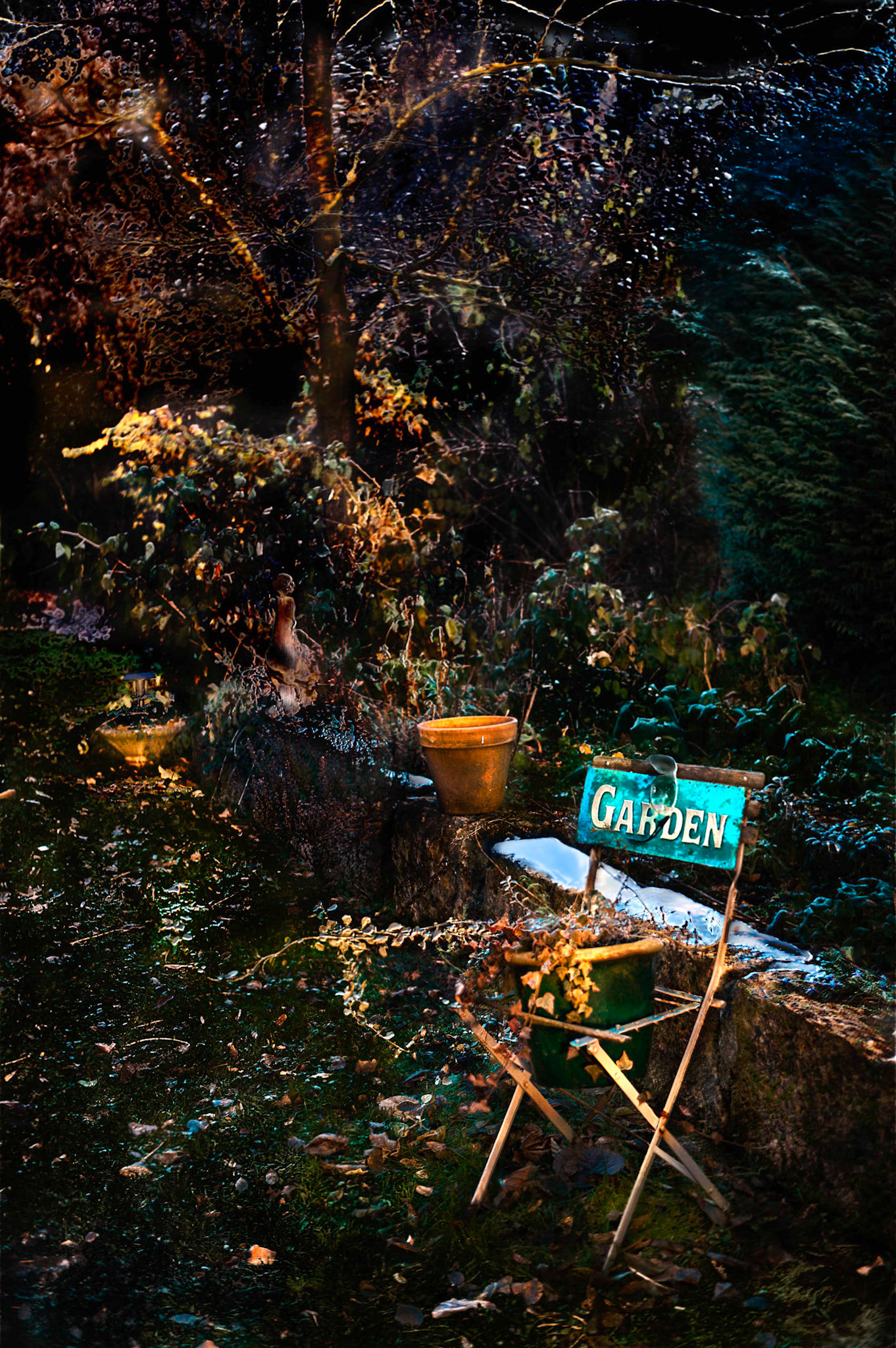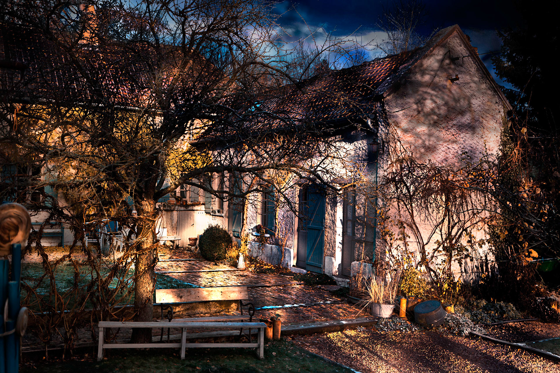 On night and day's edge tells the story of a lost but still live love. Invisible but present. My beloved left the place twenty years ago but he abolishes time. In the photos, we just miss him, he just stepped out of the frame, he filled the place one moment - but an instant in the face of Eternity. And his presence fills me with joy. So I dare to push open the door of my home. Carried by the World’s memory, I enter the bliss of life.